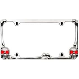 The Bully Skull License Frame is triple chrome plated with heavy duty die cast zinc that attaches easily with factory screws already on your vehicle. Add style to any vehicle with this chrome license plate frame with a Skull logo, with red LED.