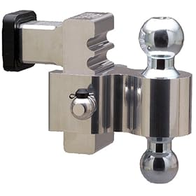 The Rapid Hitch for SUV's is an attractively designed hitch that provides the greatest versatility available in any hitch system. It's easy change double ball combination, plus adjustable height allows you to tow easily and safely by keeping the trailer tongue parallel to the ground. Light weight aluminum construction is 30% stronger that steel. Rapid Hitch is the only receiver hitch a multiple trailer owner will ever need! Quick adjustable height, pull a pin, adjust, slip pin back in. Polished High Tech Super Alloy Aluminum. Fits standard 2" receiver with one 2" ball and one 2 5/16" ball. Adjustable rise or drop of 3 3/4" 10,000# GVWR with 1500# tongue weight. Kit comes complete with hitch pins.
