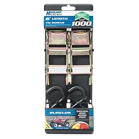 This Highland Surelok tie down has coated S-Hooks to prevent marring and scratching. The 1.75-inch by 6-foot strap makes it the perfect fit for keeping your cargo in check with its 3,000 pound break strength capacity. The Surelok style provides an added safety feature with it "locking" capacity for long those long trips of constant bouncing or vibration. Made from Power Web Plus that combines tubular edge design to absorb side impacts with a unique high strength weave design for a 360-degree protection.