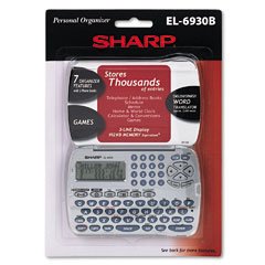 English/Spanish word translator, currency and measurement conversion Scheduler, memo, world clock and games Password protection Backlit display 12-character x 3-line display Features two telephone/address books and six built-in organizer functions. Separate numeric keypad for quick data entry. Phone Directories: 2; Password Protection: Yes; PC Download Capability: N\A; Foreign Language Prompts: English/Spanish Word Translator. - SHR EL6930B, SHR-EL6930B, SHR, EL6930B - 0.475 lbs