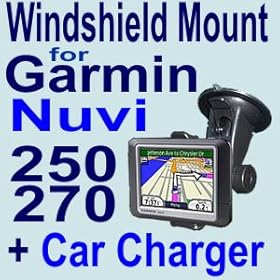 Vehicle Windshield / Suction CUP Mount / Car Mounting Kit for Garmin Nuvi 200 , 200W , 250 , 250W , 260 , 270 GPS + Car Charger