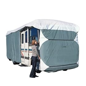 Classic PolyPro III Deluxe RV Cover. Features zippered panels so you can get to the door, engine and storage areas! Here's one handy design that's sure to save you a lot of trouble! This Cover is made to keep your RV accessible without having to remove the entire thing! Now you can get inside your RV for cleaning or get at your engine with a simple zip of an access panel! When you're done with that, just button down the hatches and the triple-layer polypropylene will shield your expensive RV from rain, snow and U.V. rays while also protecting against damaging mold, mildew and ice buildup! Adjustable front and rear tension panels provide a custom-like fit; Air vents reduce wind lofting and interior moisture; Elasticized corners for fast fitting; Rear ladder cap and tie-down rope; Storage bag; Comes in sizes to fit RVs 18-42'. Pick yours and order today! Classic PolyPro III Deluxe RV Cover