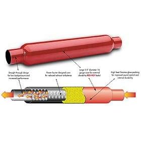 UNIVERSAL MUFFLER, GLASS PACK STRAIGHT THROUGH DESIGN FOR RICH POWERFUL RED HOT SOUND, 3.5' DIAMETER BODY, 24' OVERALL LENGTH WITH 2 1/4' DIAMETER INLET / OUTLET, SOLD INDIVIDUALLY