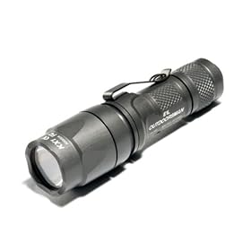 Ultra compact (finger length), dual-output mini LED flashlight with extended runtime. Its virtually indestructible, two-stage light-emitting diode (LED) light source produces a smooth, pre-focused beam that, at maximum output, is over twice as bright as that of a big two-D-cell flashlight. At its low setting it produces a useful three lumens of light and continues producing useful light levels for 40 hours on a single lithium battery. Small size (its lightweight enough to clip to hat brim for hands-free operation), dual output, extended runtime, and 10-year battery shelf life make the E1L perfect for camping, backpacking, travel, emergency/disaster preparedness kits, or as an everyday-carry for general use.