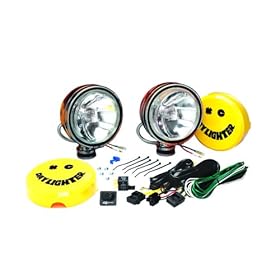 KC HiLites Daylighter Off-Road Lights sets have been a leading choice in all-terrain auxiliary light systems for more than 30 years. Each Daylighter kit comes with two 6-inch Round Daylighter Off-Road lamp housings, a fully assembled wiring harness, two 130W halogen long-range bulbs, which are 285,000 candlepower beam per light, and a pre-terminated wiring harness with a 40-amp relay and an in-cab control switch. Daylighter Off-Road Lights use a heavy-duty rubber gasket, or bulb holder, that isolates all the elements of the lamp, including the lens, the reflector, and the bulb, from the vagaries of weather. The kits also include a patented shock mounting system, updated so that it requires no extra drilling. This shock mounting system isolates the lamp unit from the mounting bracket, or surface on which the light is mounted, to reduce lamp failure due to vibration. It's a shock mount that can endure the extremes of off-road racing. With its ?" posts these shock mounts install most anywhere. The kit also includes two yellow "smiley face" lamp covers.