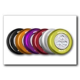 6-pack includes one of each color: red, black, silver, orange, lime and purple Where Do You Need Light? Sylvania DOT-it Bright White LED Light is bright, white and long-lasting. Better than those big dim incandescent tap lights and easier to use than a flashlight. Its convenient: sticks to most anything, including fabric, leather, plastic and glass - without marring the surface. Its is self-adhesive. Jush push to turn on and off. Bright white LED light with self-adhesive back for temporary No Mar stickup anywhere you need illumination. Sticks practically anywhere you have a clean solid surface. Colored housing presents a complementary finish to wherever you choose to mount the lamp. Powered by three AAA batteries that are included. Features: - Replace batteries every 100 hours for maximum brightness - Portable - no wires - use it anywhere - A unique 3M adhesive on every DOT It light sticks and re-sticks to practically any surface, without marring. The adhesive can withstand extreme temperatures from zero to 120 degrees and can be used over and over again - Small enough to fit in your pocket and can stick to a variety of surfaces, including fabric, leather, plastic, glass and fiberglass. Use them anywhere you need light: in your car, in your home, where you play, where you work or with your kids
