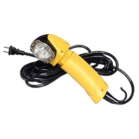 The Fluorescent Work Light With 25 ft. Cord is protected by a tough, impact resistant casing. The light includes a 10,000 hour rated bulb and a double hook stand! The 12 AMP rated light also contains a grounded receptacle. From Bayco.