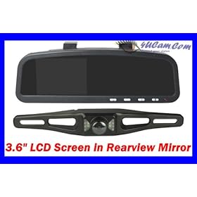 PRODUCT DESCRIPTION: Get the security you need to protect your family and friends. Eliminate the blinds spots and see what's behind you before you back up. Large 3.6" TFT LCD monitor built-inside of rear view Mirror is easy to view. Wireless Back-Up Camera System, no need for complex connect wire layout, easy install. Build-in 10 high-powered IR LED night vision helping to see better at night (see sample picture below) Automatic activate LCD backup view when on reverse position. Mirror and Up/Down image switch by pushing the button on the monitor Automatic sun blocking feature viewing while camera facing the sun 3.6 Color TFT-LCD color high resolution 960x240 Monitor allows you to see what is behind you before you back up Waterproof, heavy-duty IR camera mount to your license plate location For use with 12V DC electrical systems Installation is easy with the elimination of wires from camera to monitor Comes complete with everything you need to install Easy to read English installation manual See the actual test cases on the picture link above. (Due to the integration with monitor inside the mirror, daytime image might be have glare issue if direct bright light reflection on the mirror)