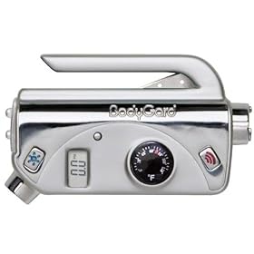 Life-Protecting Compact, Multi-Function Key Ring Tool features Automatic Glass Breaker, a Safety-Blade Seat Belt Cutter, Powerful Sonic Alarm, High Intensity High and Low Beam Bright White LED Flashlight, a Digital Tire Gauge, a Thermometer and a Flashing Red Distress Light for Signaling and High Visibility. The small, tough ABS nylon housing has a "Glow in the Dark" Panel for quick location and an elegant chrome look. Lithium Batteries included to provide a Personal Safety Kit securely attached to an included Key Ring.